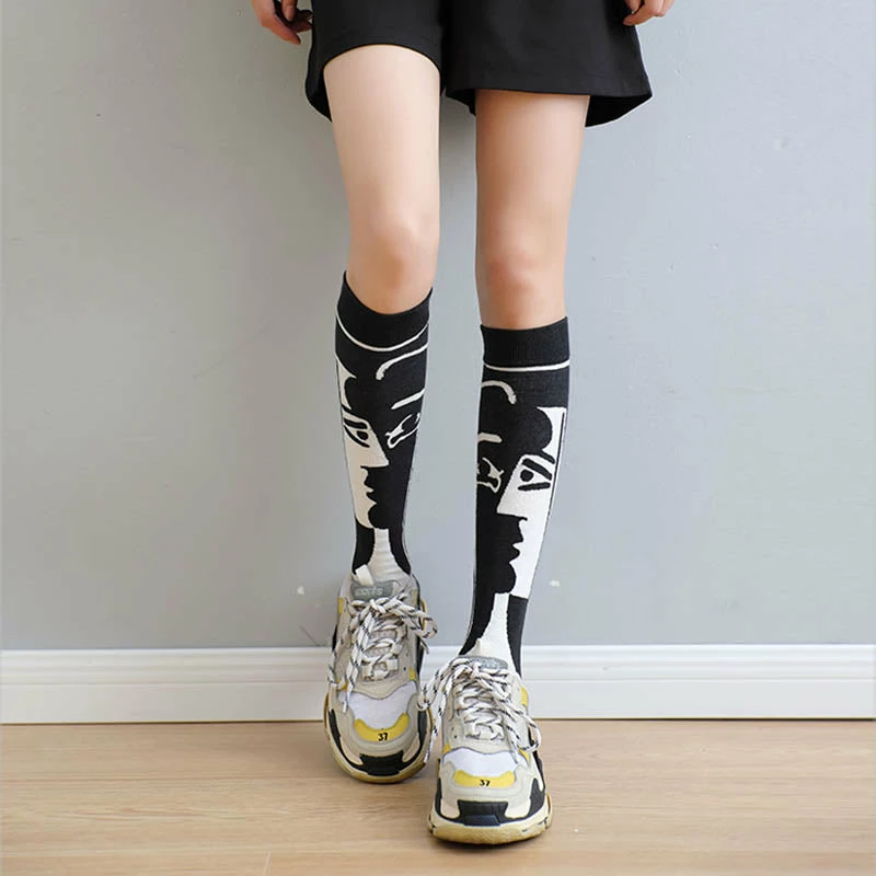 Yoursblack Black And White Avatar Pattern Tube Socks