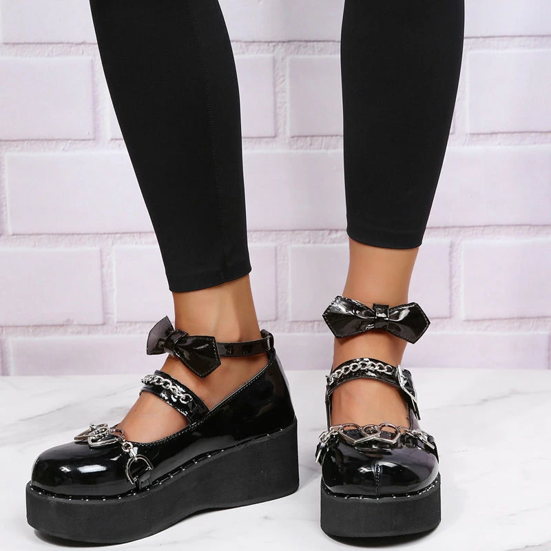 These shoes are a great addition to my wardrobe. The platform is sturdy, and the bow-tie heart buckle is a standout feature.