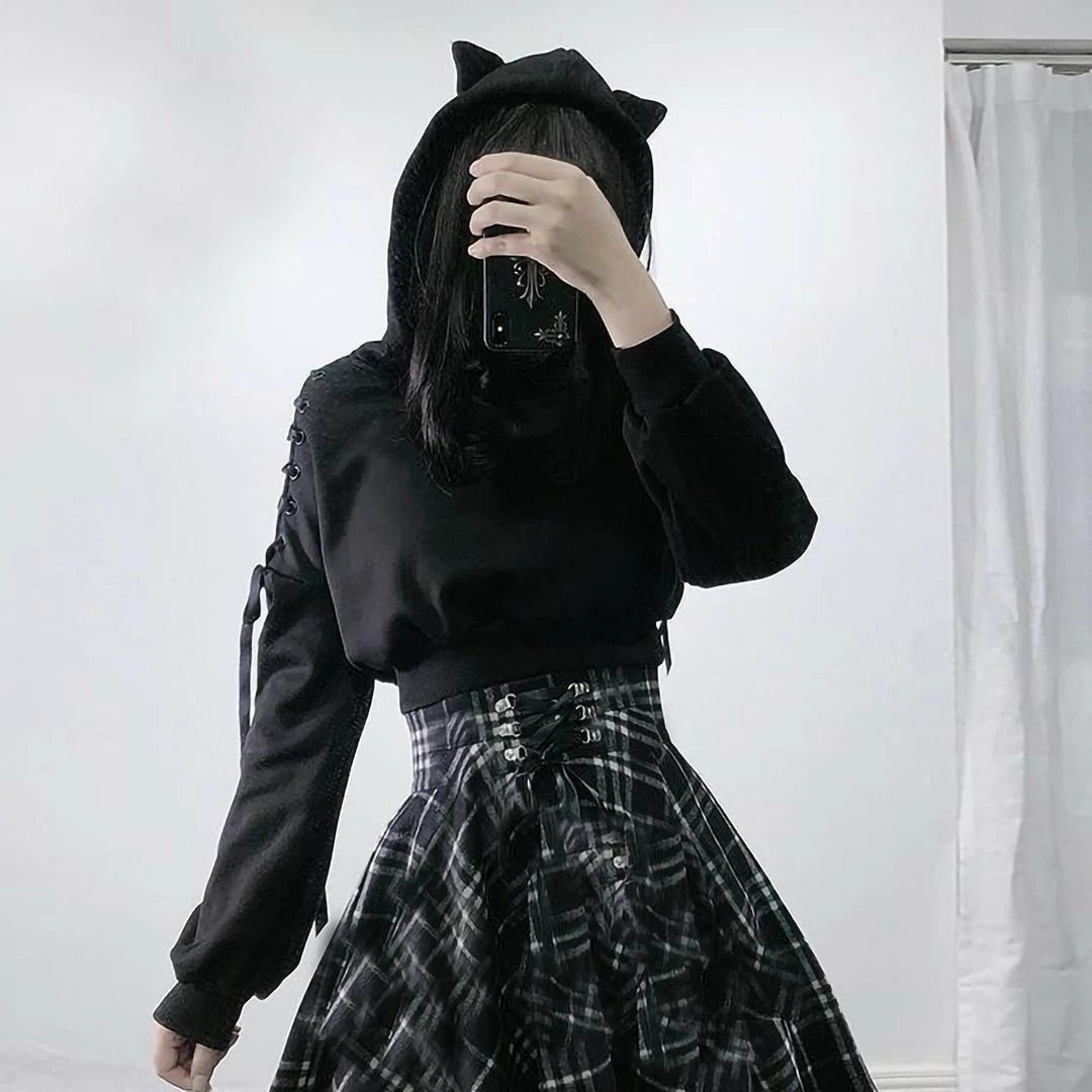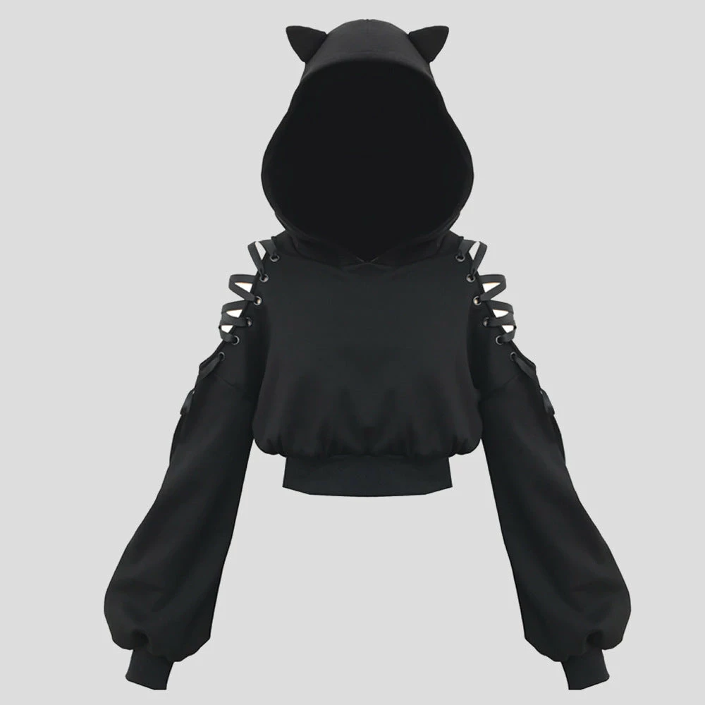 Cat Ears Lace Up Sweatshirt
