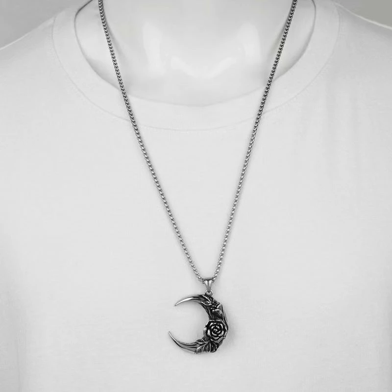 Yoursblack Crescent Rose Necklace