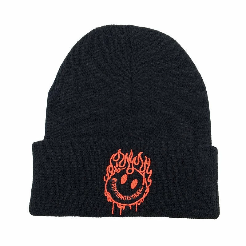 Yoursblack Flame Smiley Beanie Hat NEWS
