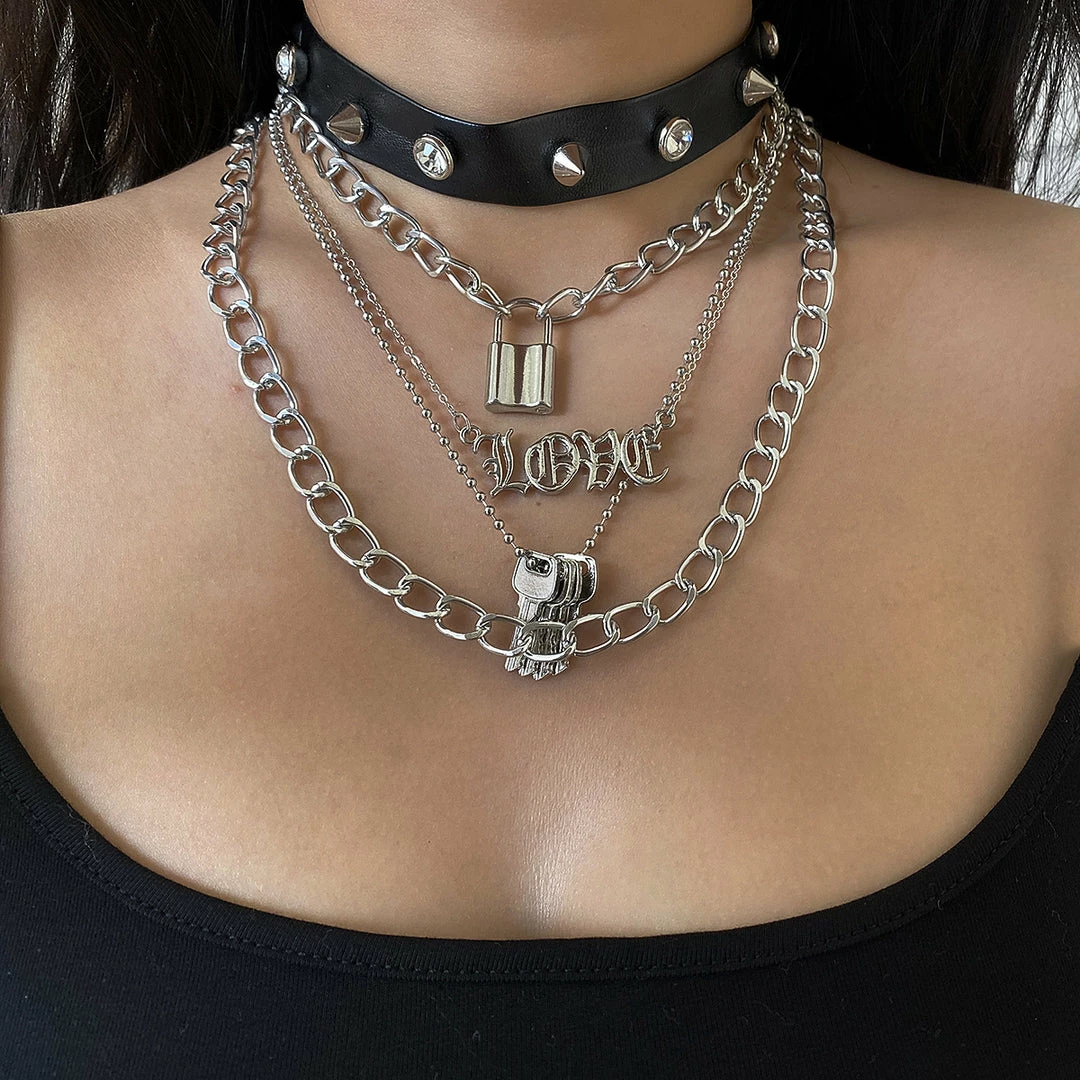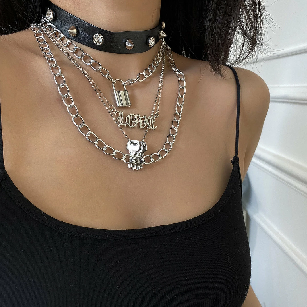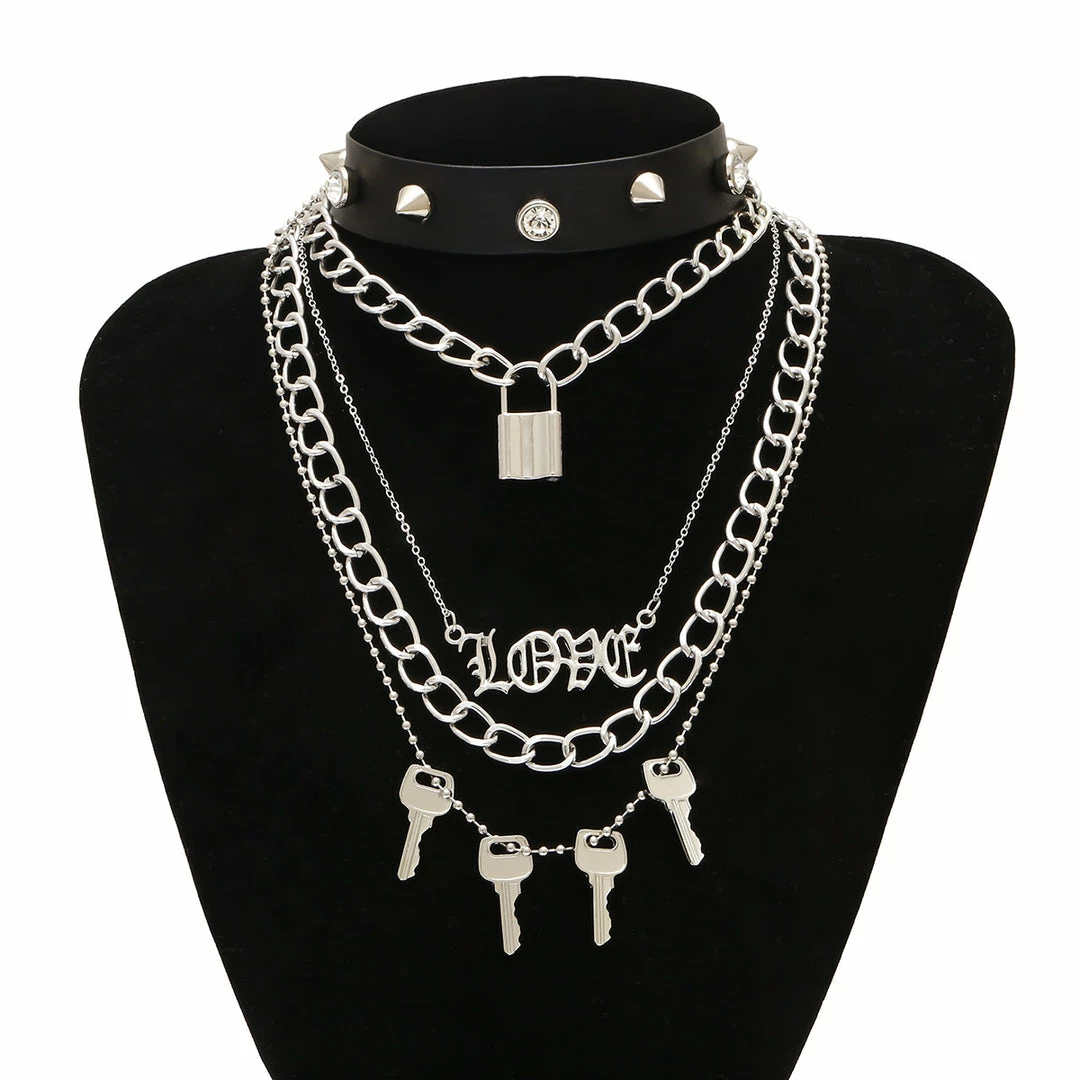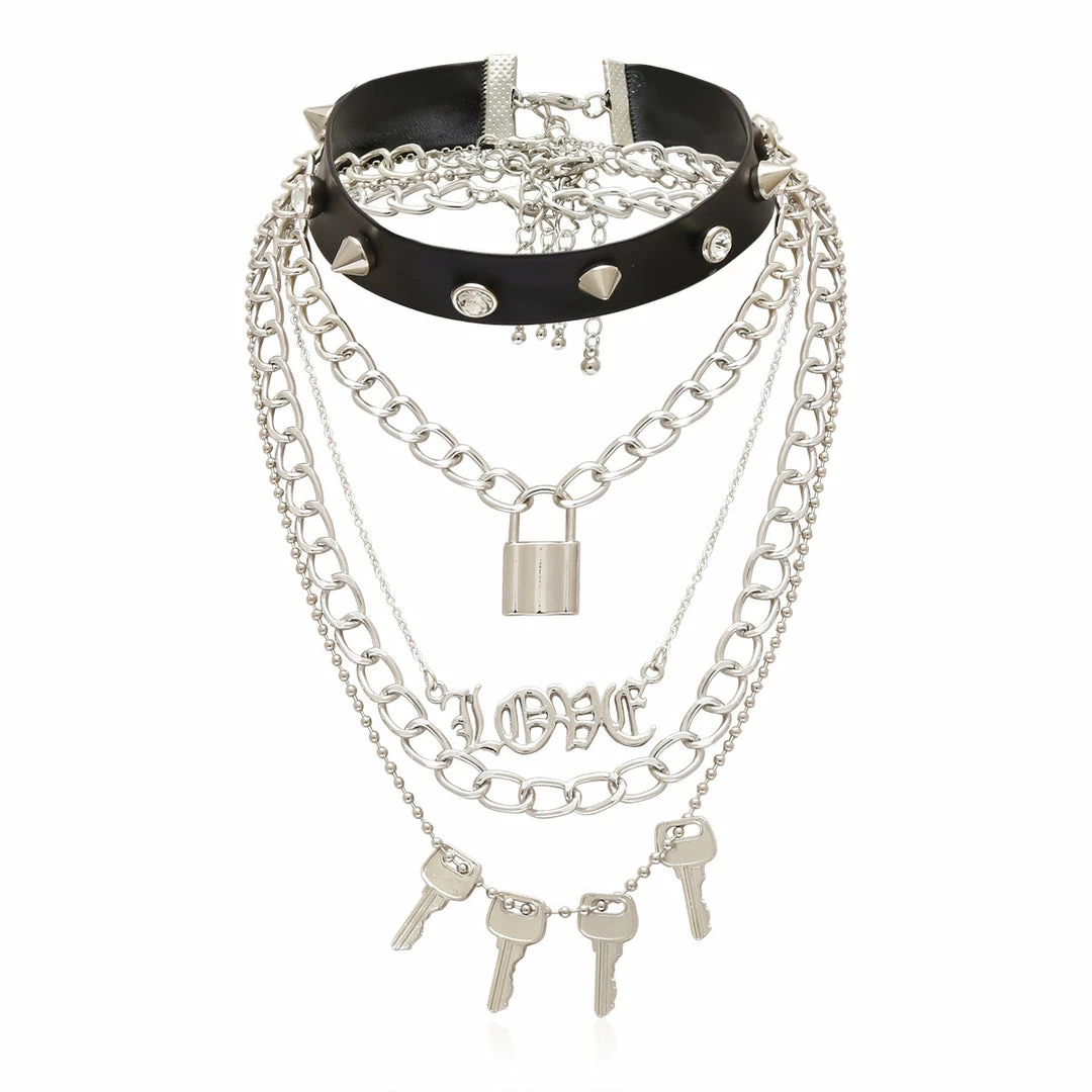Yoursblack Rivet Lock Keys Choker