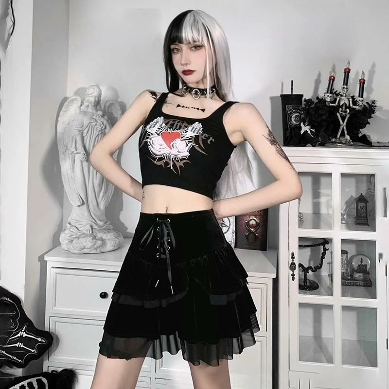 Watch Me Mini Skirt. Leave them infatuated with this velvet mini skirt that has a lace up design, a contrast tiered construction with lace and a high waist fit.